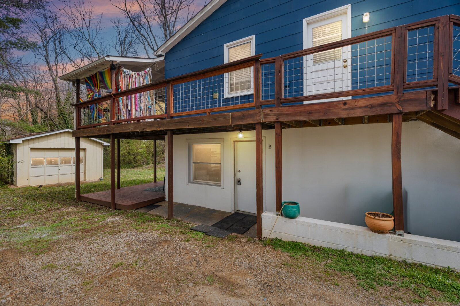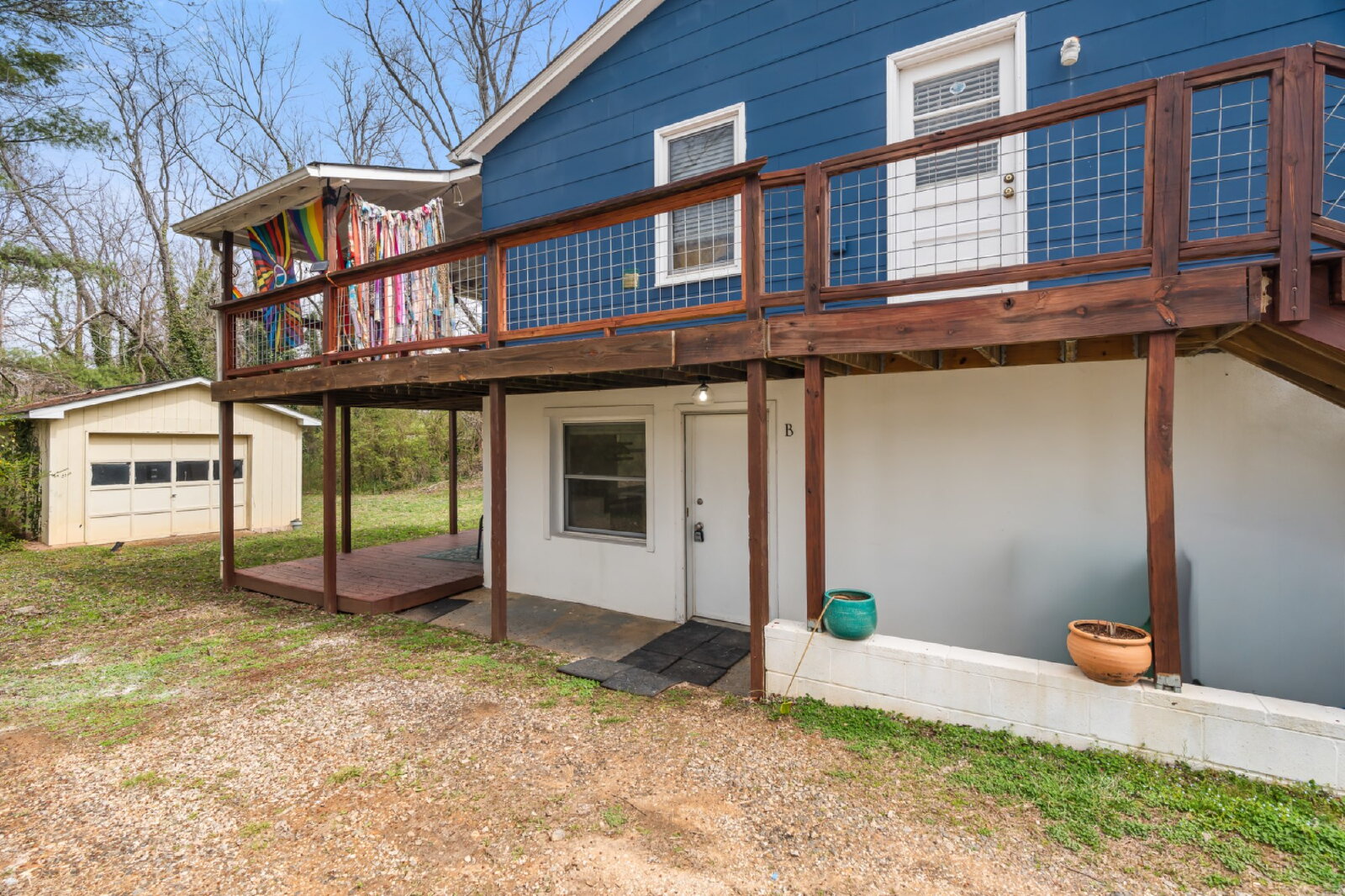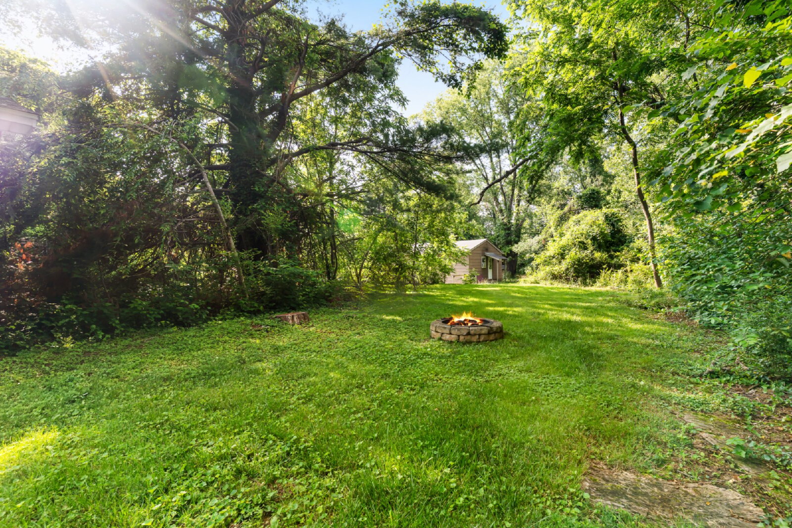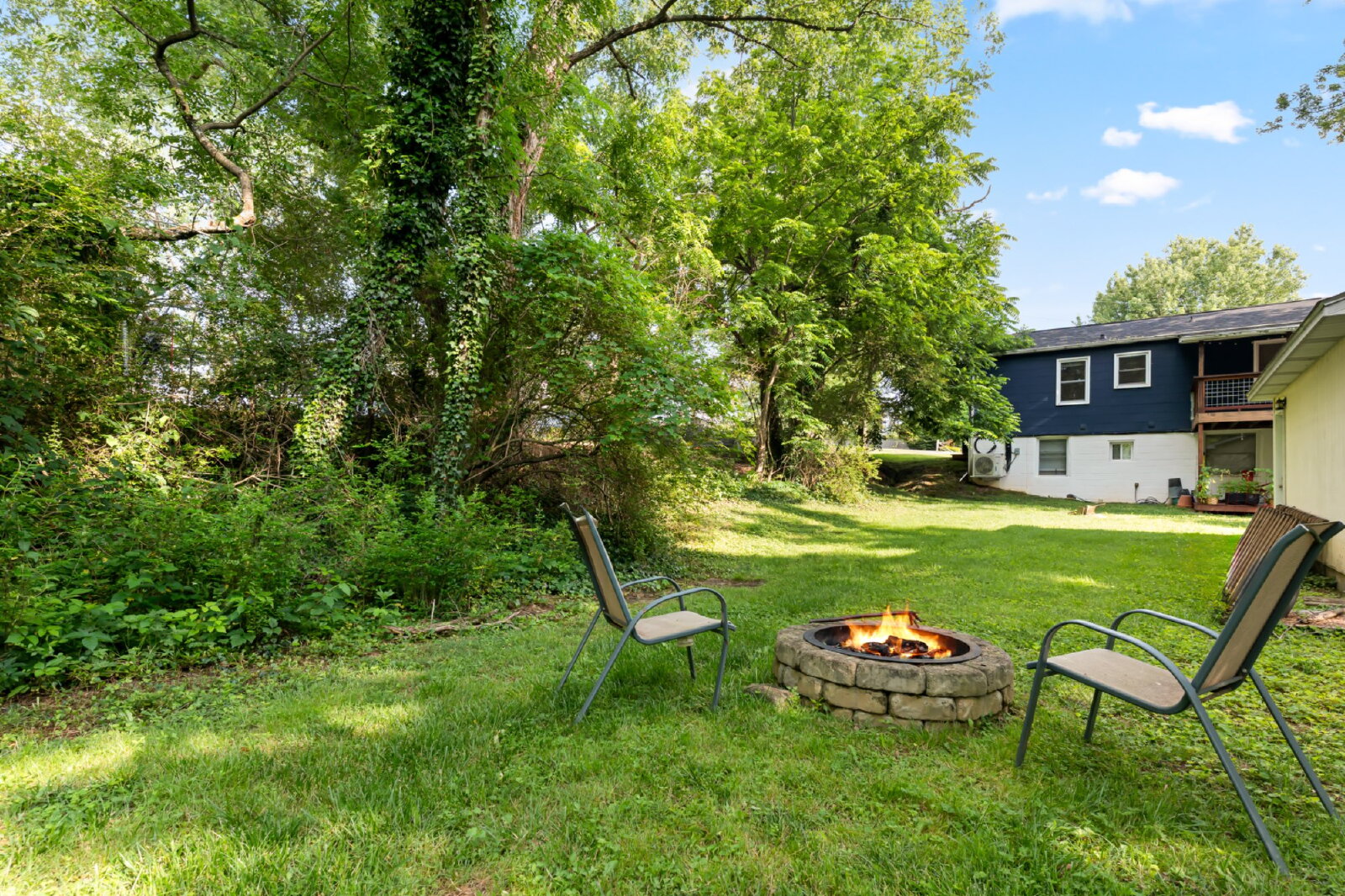 --> Outdoor Access: Shared access to a large backyard with a fire pit and a private deck.