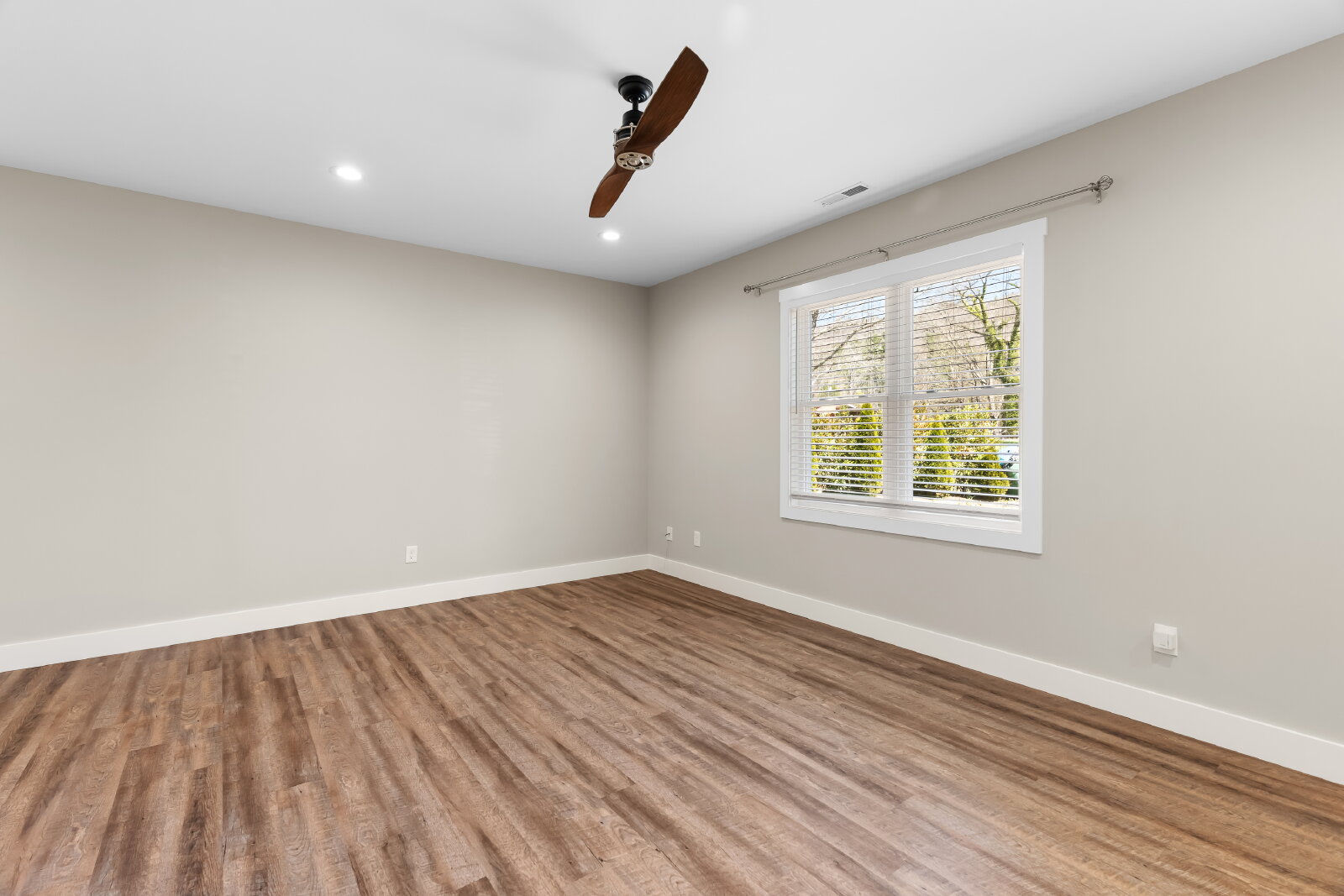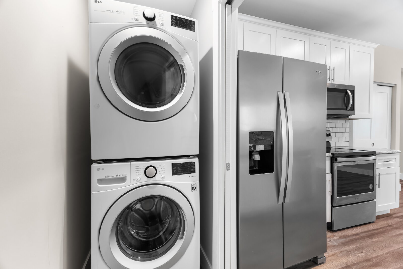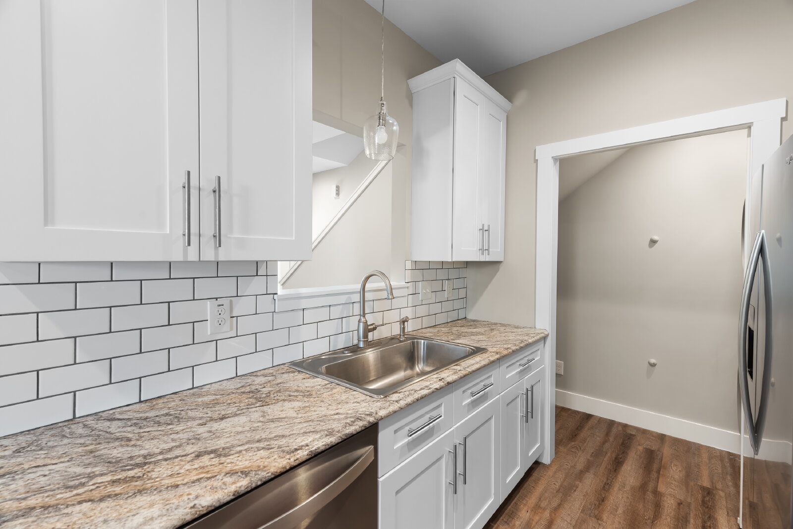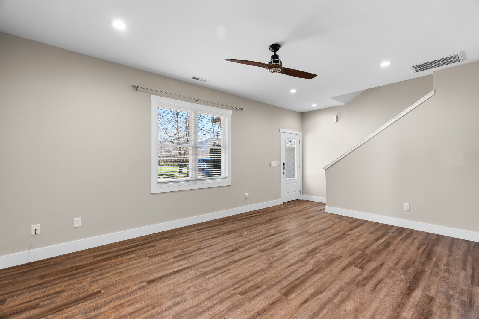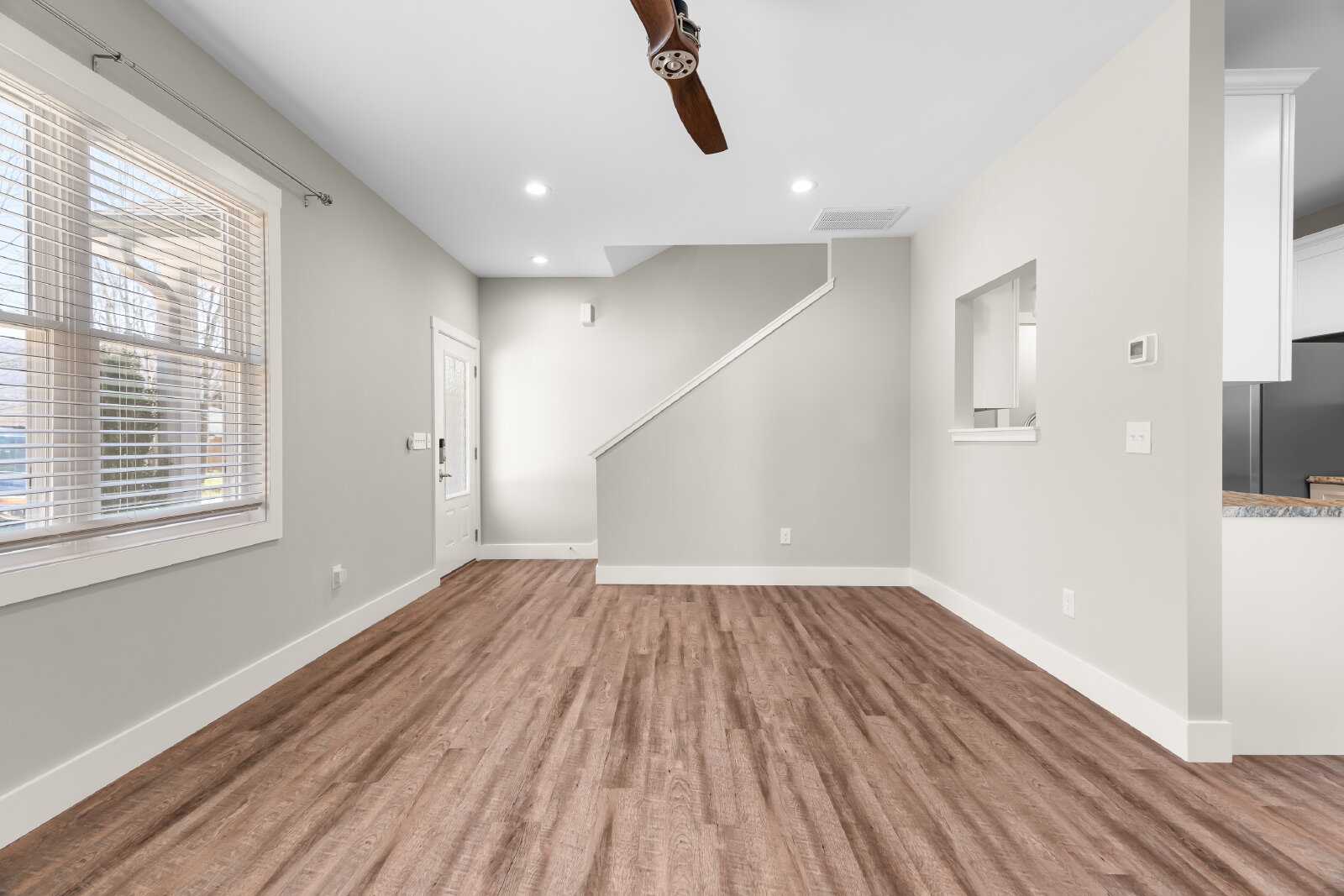 --> Modern Finishes: Luxury vinyl plank flooring flows through the open-concept living areas, complemented by cozy carpeted bedrooms.