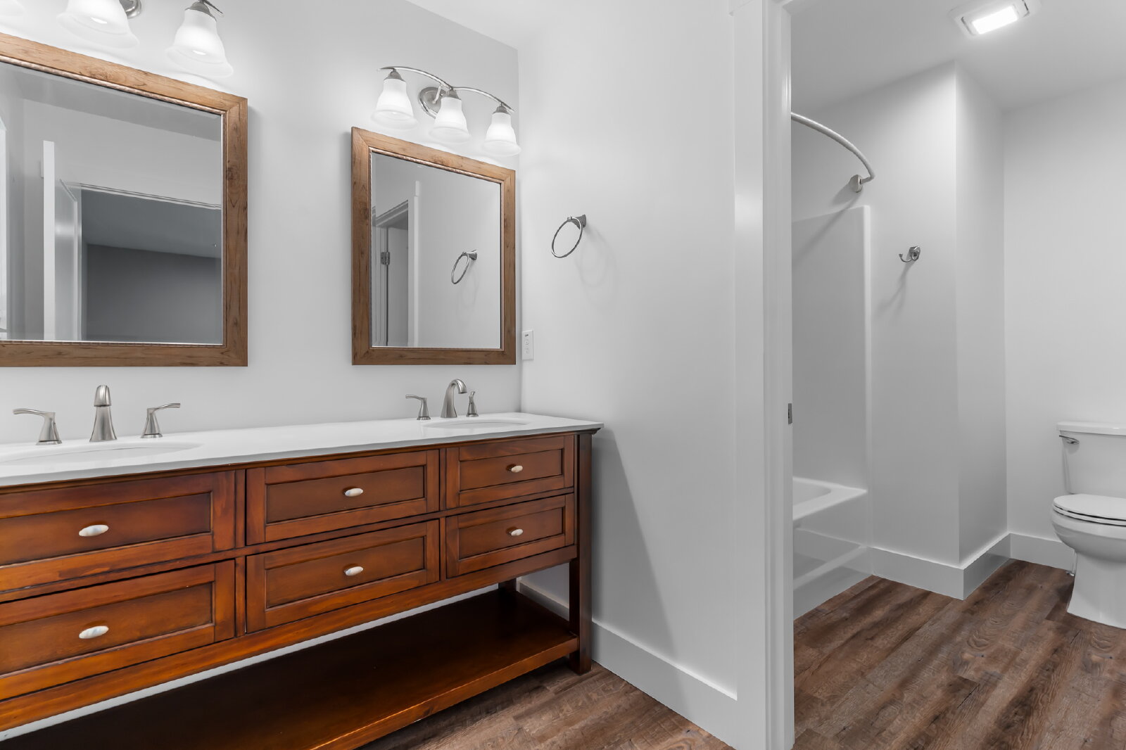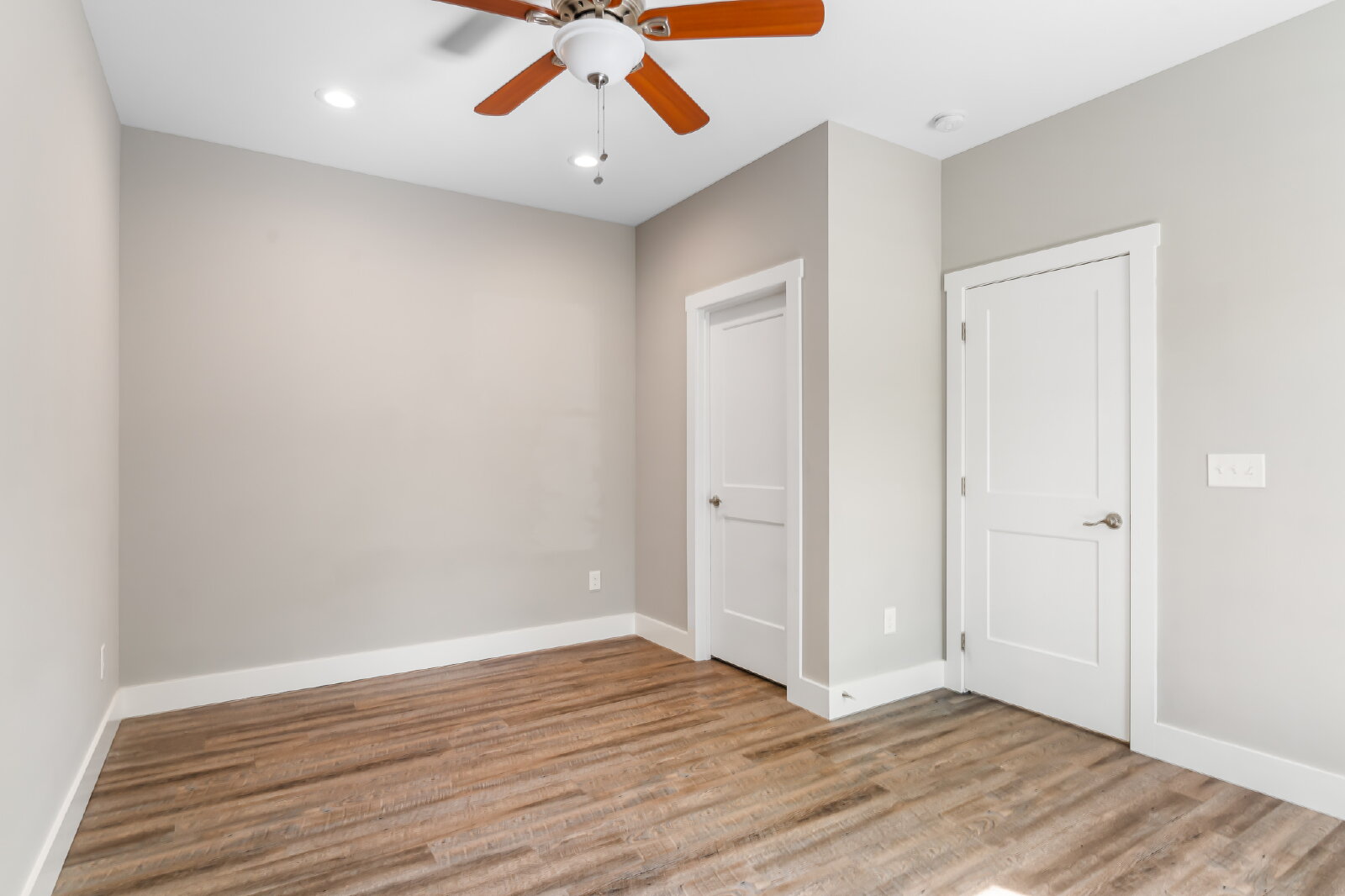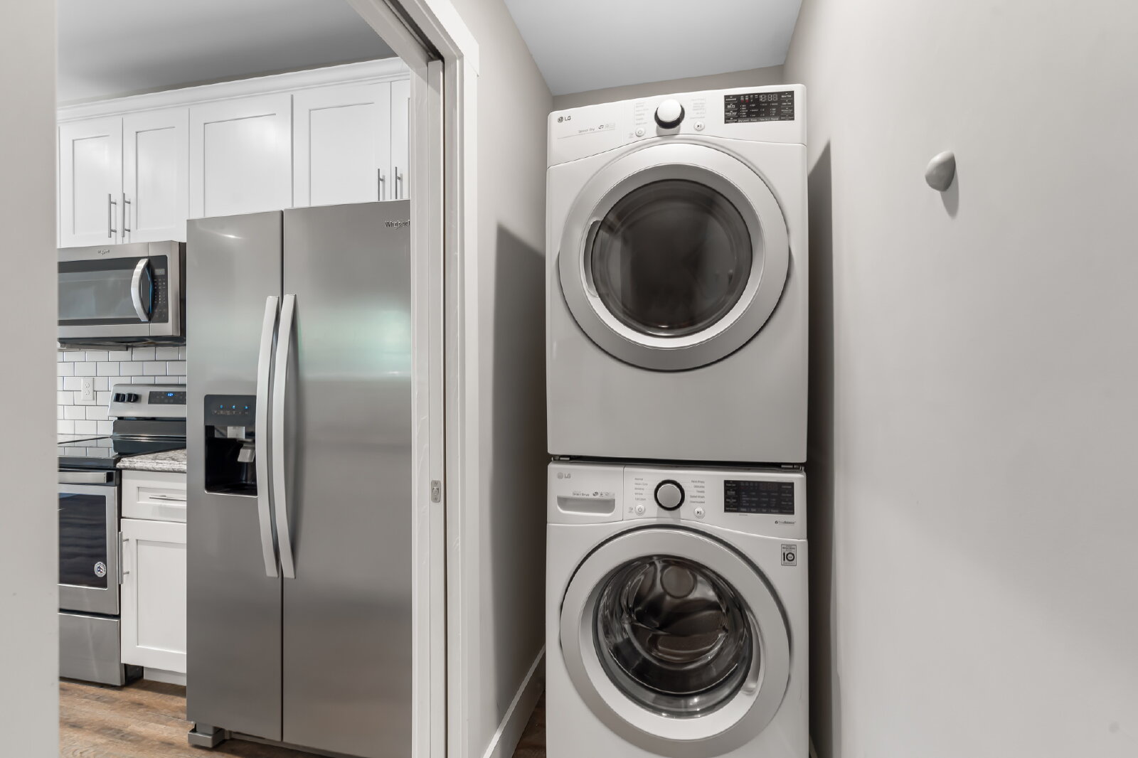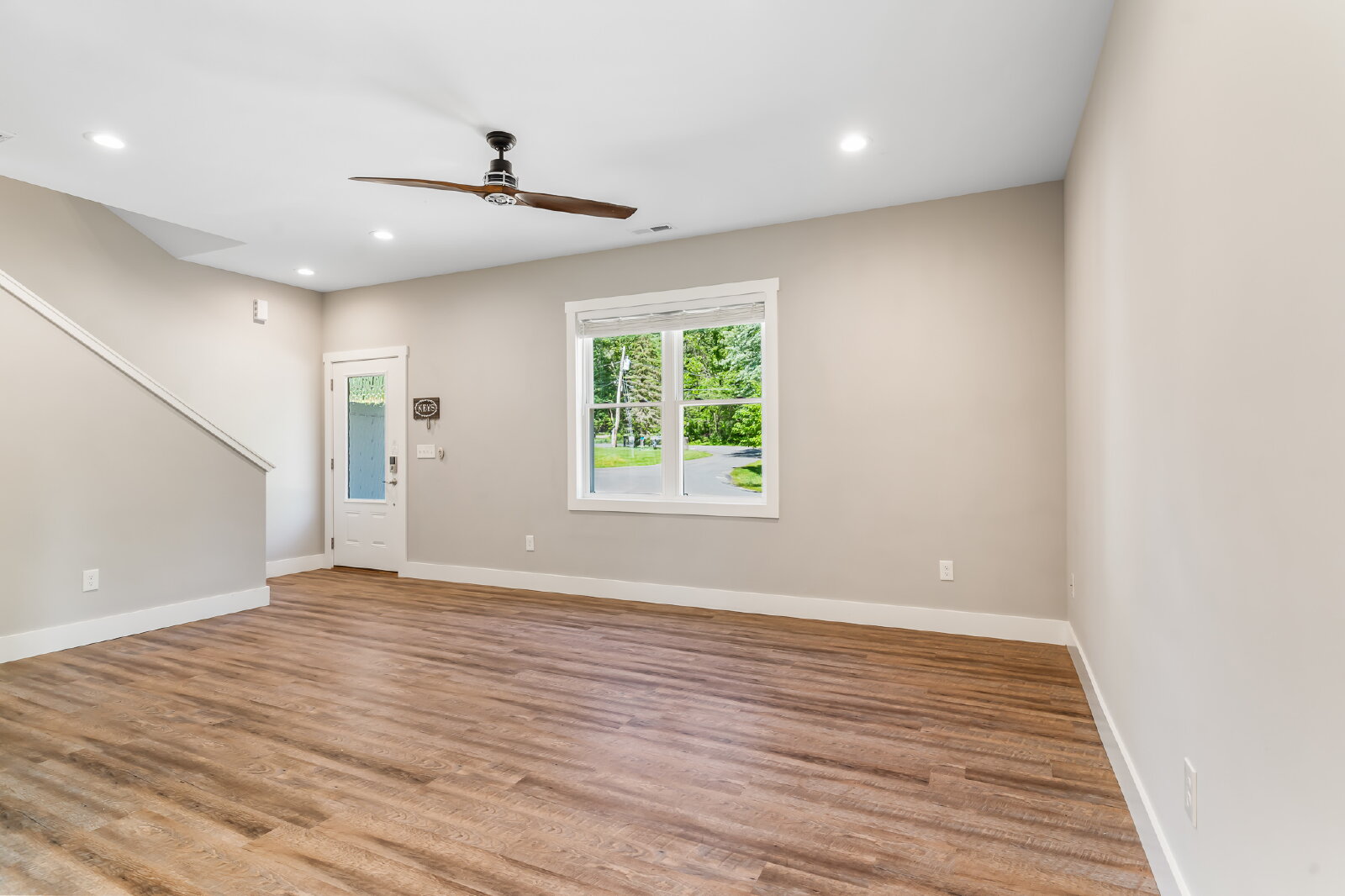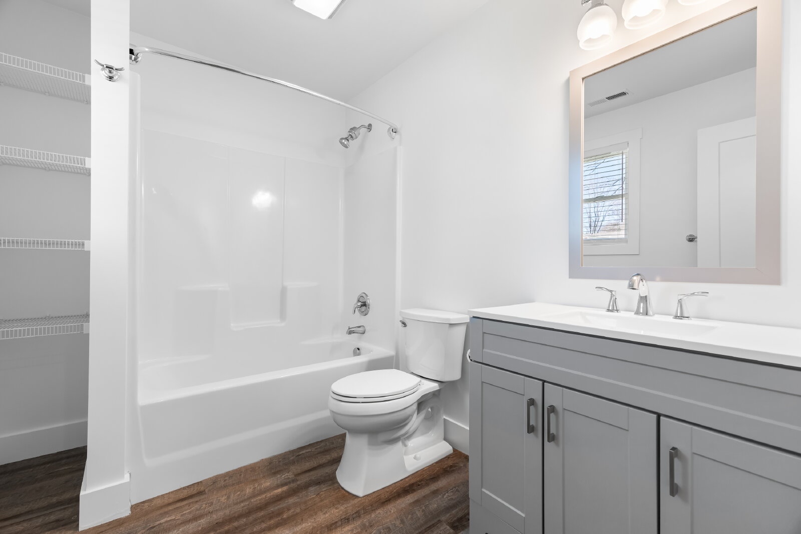 --> Modern Finishes: Luxury vinyl plank flooring flows through the open-concept living areas, complemented by cozy carpeted bedrooms.