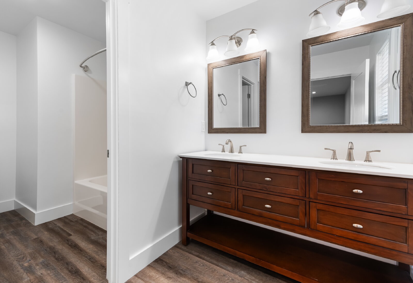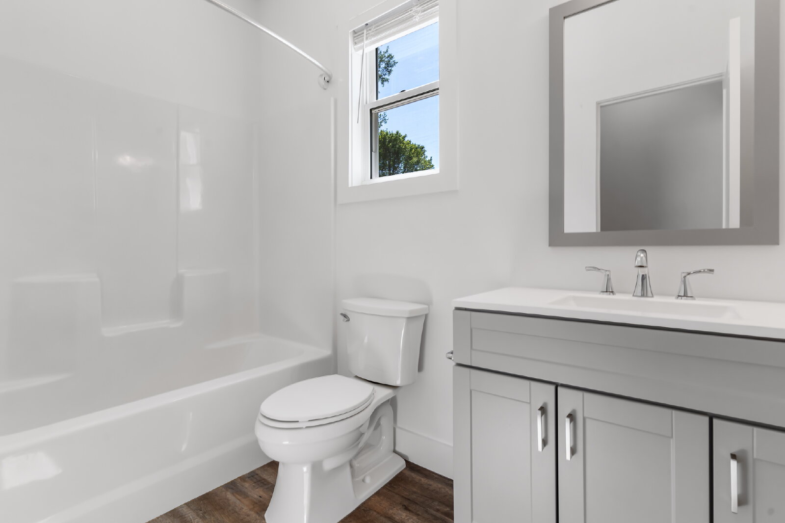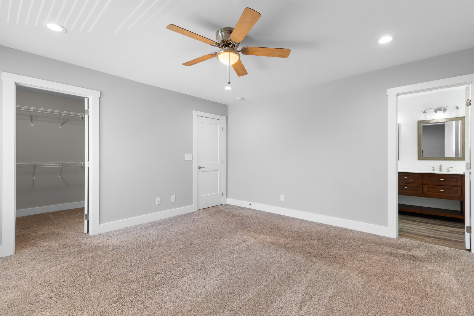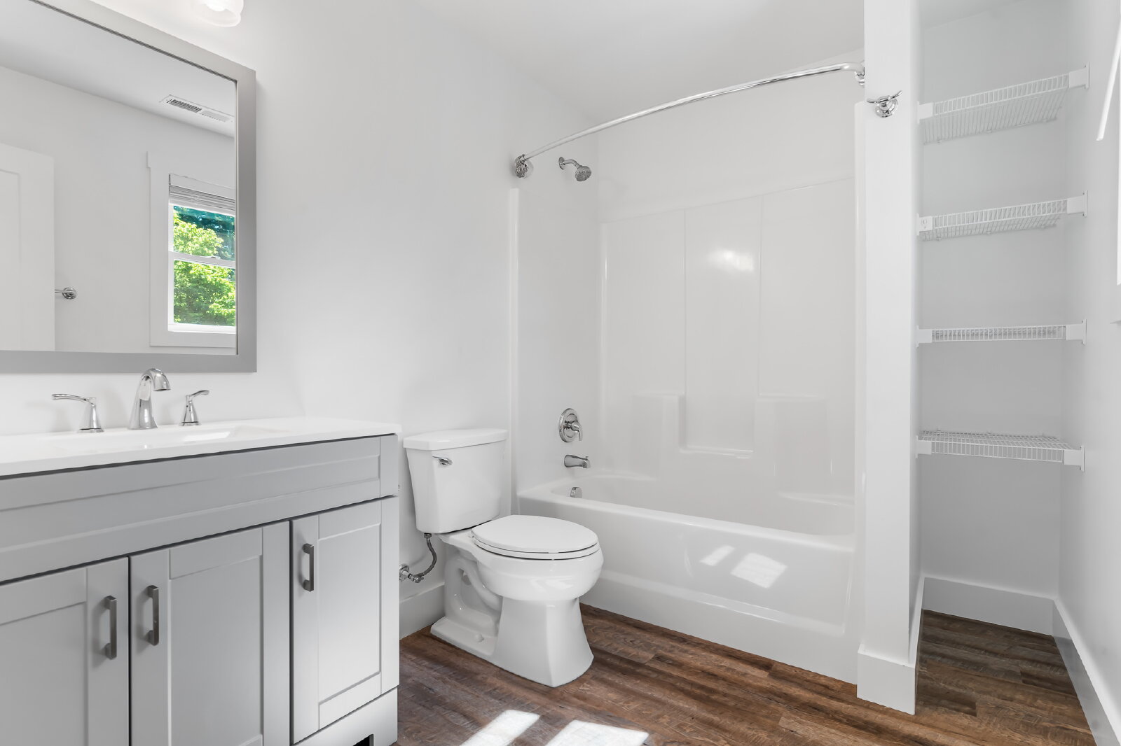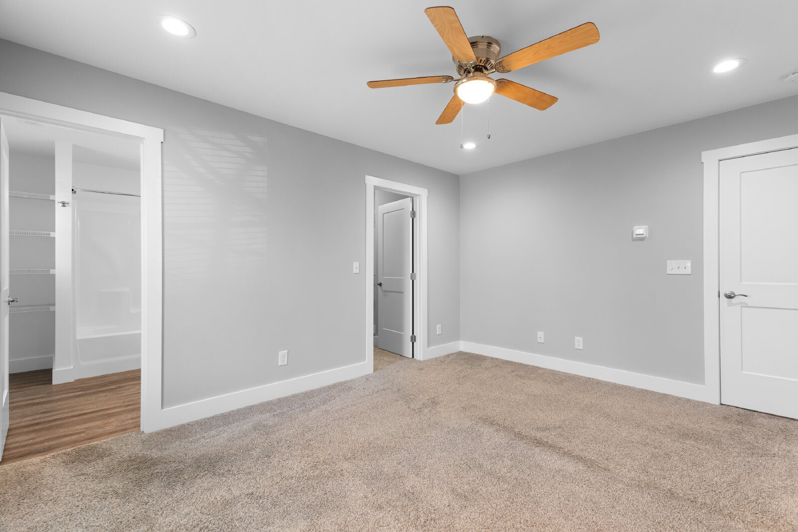 --> Modern Finishes: Luxury vinyl plank flooring flows through the open-concept living areas, complemented by cozy carpeted bedrooms.